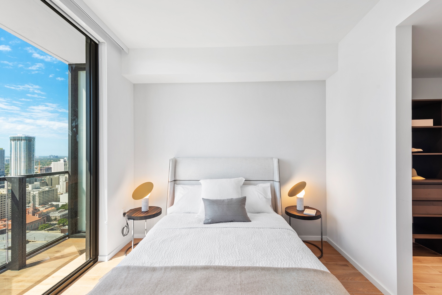 Disfrute de vistas panorámicas de la bahía de Biscayne en nuestra espaciosa suite de dos dormitorios con espacio para descansar y jugar. Nuestras suites con cama king size, amplias y luminosas, cuentan con una sala de estar independiente y una gran mesa de comedor que crean un espacio ideal para reunirse. Las amplias ventanas del piso al techo muestran los veleros y la imponente noria de observación Skyview desde su balcón privado con salida. Una cocina totalmente equipada con todos los electrodomésticos modernos crea una experiencia gourmet inolvidable. Los baños privados tipo spa cuentan con artículos de tocador de alta gama y ropa de cama de lujo para que te sientas como si estuvieras flotando. Diseñados con una paleta costera contemporánea y detalles residenciales selectos, hemos creado comodidad en un entorno sofisticado sin esfuerzo.
