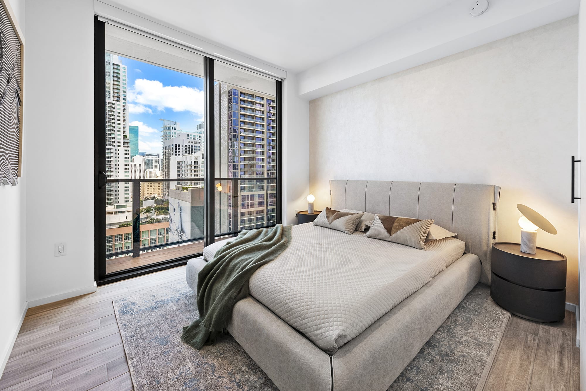 Cada una de las tres habitaciones incluye su propio baño privado, equipado con características inspiradas en un spa, duchas de vidrio a ras de suelo y artículos de tocador de lujo que ofrecen una escapada tranquila después de un día vibrante en la ciudad. La sala de estar recibe mucha luz natural desde las ventanas del piso al techo y se abre a balcones privados con vista a las cristalinas aguas de la bahía de Biscayne, el puerto deportivo de Miami y la noria de observación Skyviews Miami.