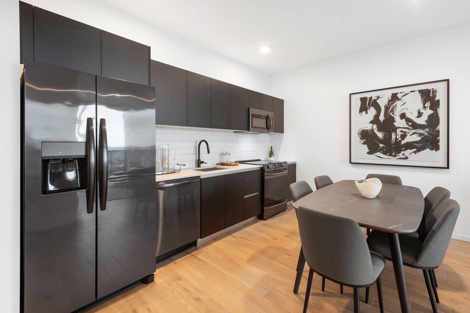 Relájese en un baño inspirado en un spa equipado con artículos de tocador de alta gama y ropa de cama suave y lujosa. La cocina totalmente equipada incluye electrodomésticos modernos, gabinetes italianos personalizados de Ialkraft, encimeras de cuarzo y un juego completo de utensilios de cocina, cubiertos y artículos esenciales para comer, perfectos para estadías prolongadas, viajes de negocios o viajes de placer.
