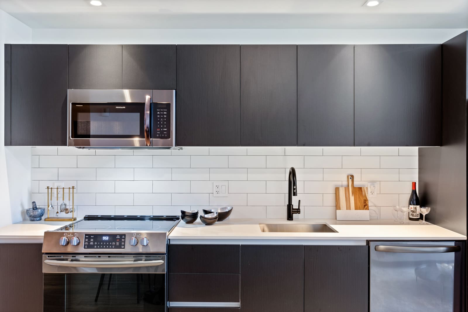 Una cocina gourmet totalmente equipada, con electrodomésticos de acero inoxidable, encimeras de cuarzo y gabinetes italianos personalizados, ofrece la flexibilidad de comer en la habitación o estadías prolongadas. Los baños inspirados en los spas cuentan con duchas con mampara de vidrio, artículos de tocador de alta gama y ropa de cama de lujo para una experiencia rejuvenecedora. Desde pisos de gres porcelánico con vetas de madera hasta modernos accesorios en negro mate, cada detalle refleja una estética costera refinada. Ya sea que esté aquí por negocios, romance o placer, esta suite ofrece una verdadera experiencia de hotel de lujo frente al mar en el centro de Miami.